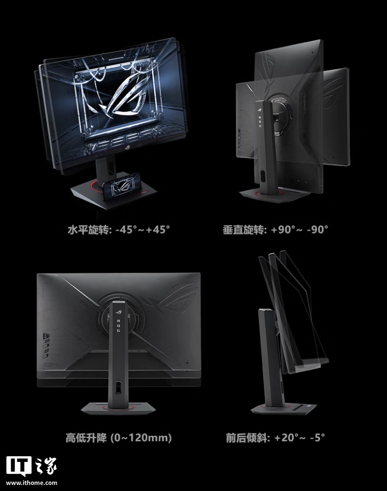 节省甄选时间,该机支架支持升降 / 倾斜 / 旋转,定价为 2999 元。显示器本体支持 VESA 100x100mm 壁挂,